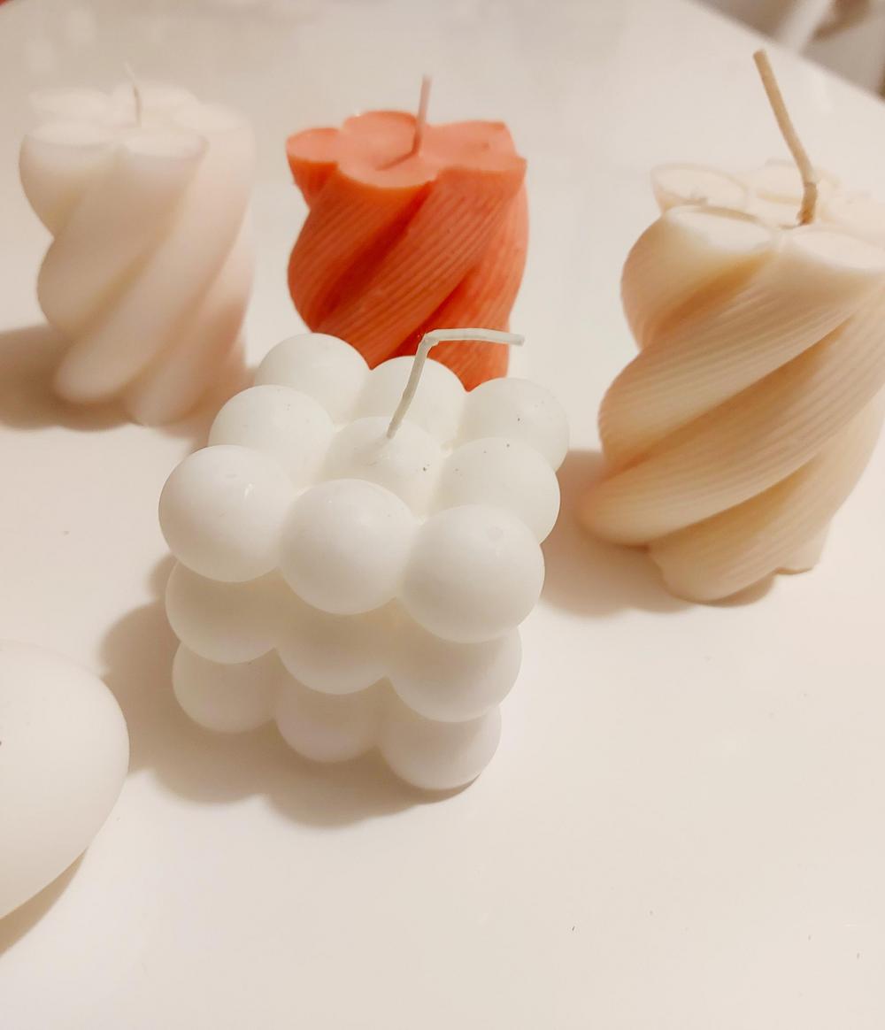 Alla esimerkkejä kynttilöistä joita sinulla on mahdollisuus tehdä Rauman Hyvän Mielen talolla.