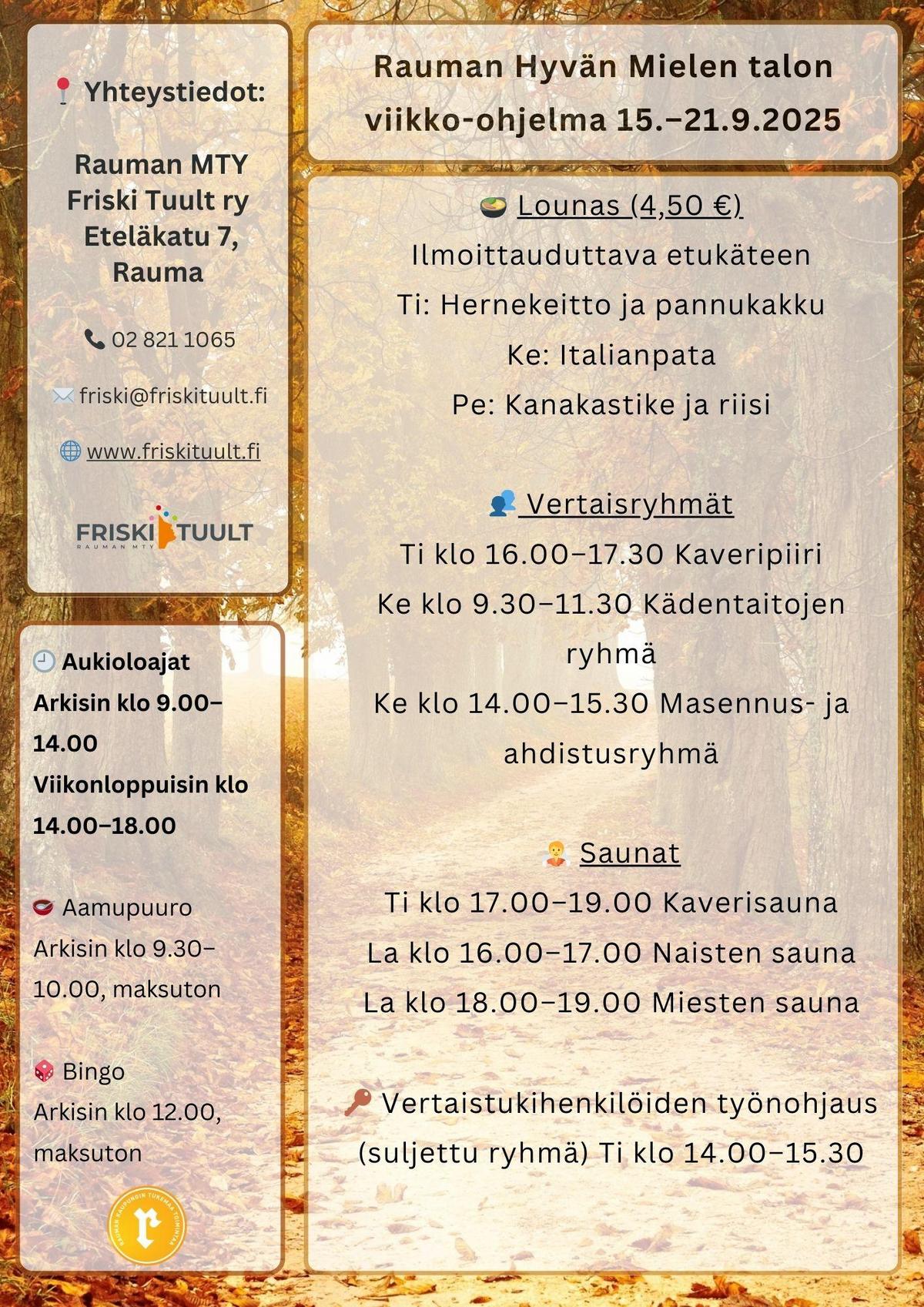 Rauman Hyvän Mielen talon viikko-ohjelma