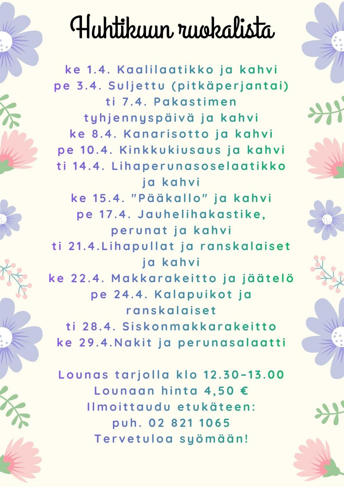 Huhtikuun ruokalista